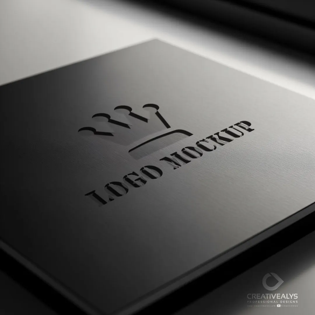 With its dark surface background, this mockup instantly adds depth, class, and elegance to any logo design. Perfect for creating strong, professional, and stylish brand presentations.