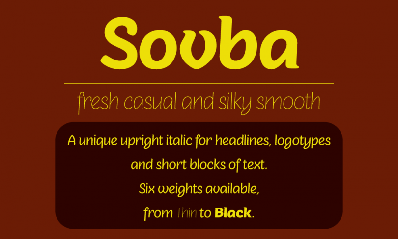 Sovba, a fresh, casual and silky smooth typography for headlines, logotypes and short blocks of text. Six weights from Thin to Black available. Sovba is an amiable round sans-serif inspired by handwriting. Sovba font is useful for a look that is uniquely casual, fresh and smooth. Sovba typeface simplifies character forms down to their basic characteristics, and has a strong sense of silky smooth forward motion. Sovba typography includes more traditional optional alternates for a number of characters, including the ‘E’ and ‘F’, Open Type alternate characters, old style figures and small caps. Sovba is a fine choice when you require a versatile upright italic for logotypes, headlines or short blocks of text. The package also includes. WOFF, the web open font formats for use in web pages. Download it now and feel free to share it. Also don’t forget to subscribe to our YouTube Channel to get more amazing stuffs and useful information.