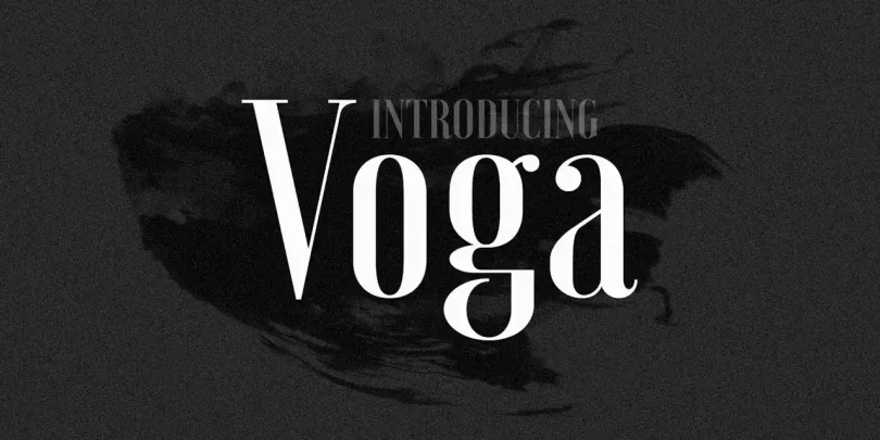 This font, Voga, was designed by Charles Daoud. Voga is a condensed modern Didone typeface with three weights; Regular, medium, and bold. The idea was to create a very elegant typeface with some unique letterforms based on the principle of contrast – curves vs. strong straight lines – thin hairlines vs. thick stems – ball terminals vs. geometric serifs. These characteristics shape it into a glamourous display font primarily used for titles and large typography settings. Voga was inspired by iconic typefaces such as Bodoni and Didot.